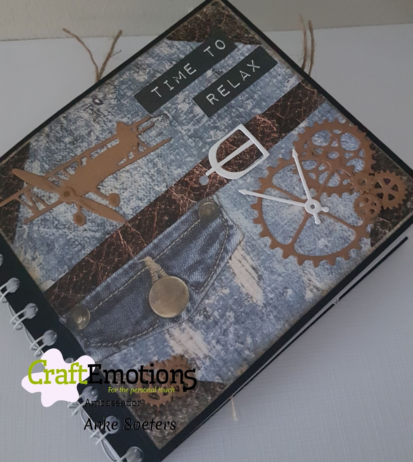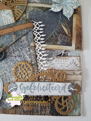 De leuke tandwielen en het vliegtuig zijn nieuwe stansjes van CraftEmotions. Deze heb ik met craft gestansd en daarna ingesmeerd met Cosa Wax.